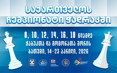 14 – 23 აპრილს ბათუმში გაიმართება საქართველოს ჩემპიონატის უმაღლესი ლიგა 8, 10, 12, 14, 16 და 18 წლამდე ჭაბუკთა და გოგონათა შორის. ჩემპიონატი ტარდება ... -